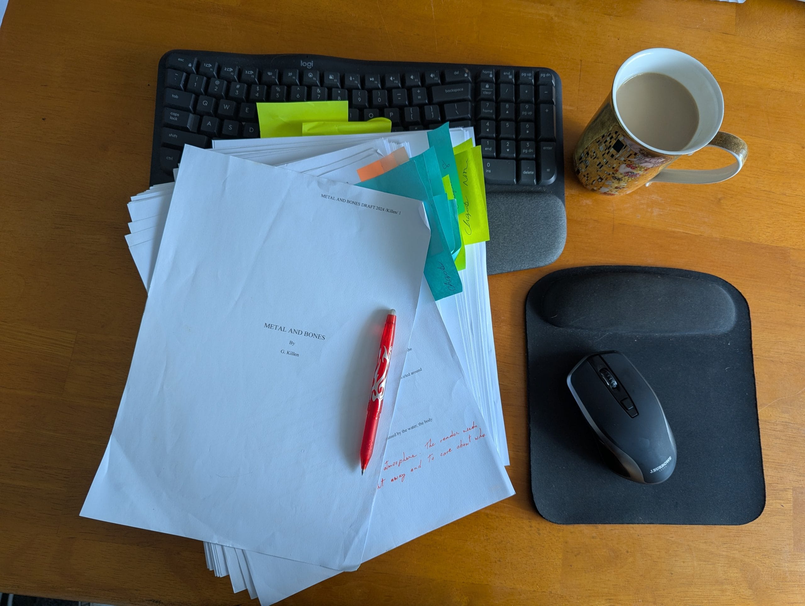 Right now, as things stand, I have a completed manuscript which has been edited to within an inch of complete deletion and back again. It’s been ages since I typed ‘The End’ on this thing and yet it exists on my computer in various forms taunting me. Patrick Ness, a British-American author, said in his keynote speech at Genrecon 2025 for Queensland Writers Centre, ‘At some stage you have to stop pushing the peas around the plate.’ This is so true. Every time I open that damn file I change something. Deleted it, moved it, shook it all about. It’s like a writer’s version of the hokey cokey.